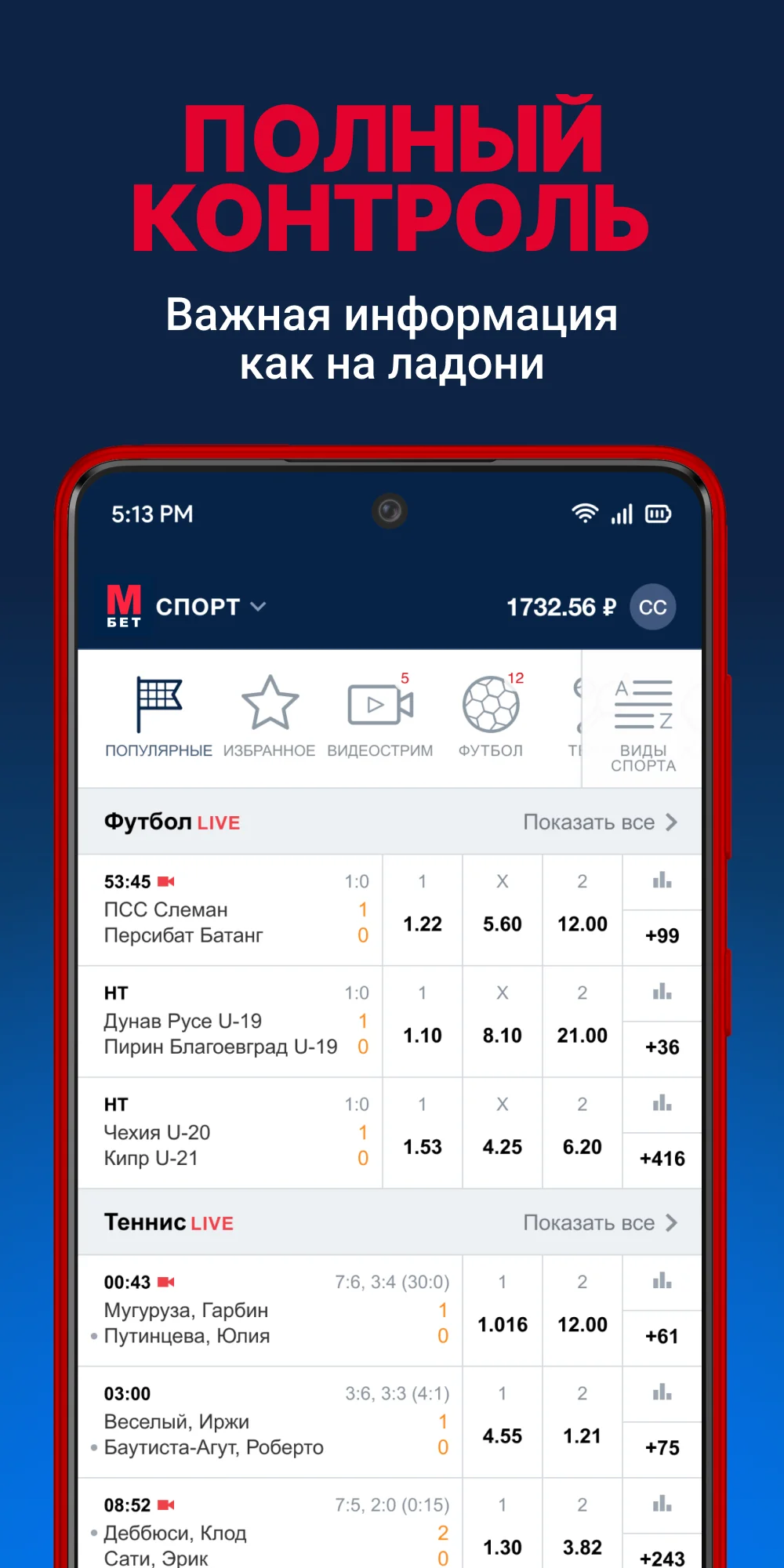 Удобство мобильного приложения несомненно - теперь игрок не привязан к своему компьютеру, а может осуществлять ставки из любого места, где будет доступ к интернету. В целом приложения БК Marathonbet ничем не уступают десктопной версии сайта, весь привычный функционал сохранен.