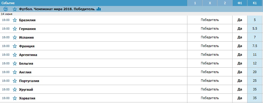 Теперь перейдем к фаворитам, которых мы отобрали по множеству факторов. Для начала ознакомимся с точкой зрения букмекера: