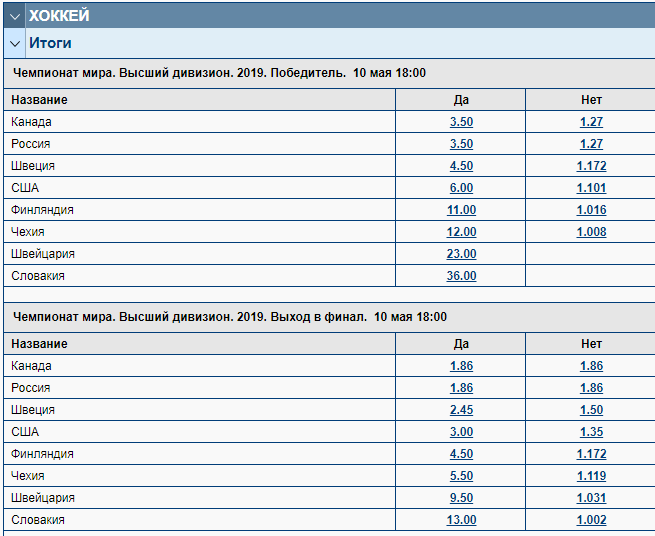 Букмекеры более всего на этом Чемпионате верят в победу России и Канады, потому дают одинаковый коэффициент на успех – 3.50. Гадать и ставить на победителя первенства мы не станем, но вот то, что Швеция не пройдет в финал – вполне реальная перспектива, поскольку скандинавы просто-напросто не выдержат того груза ответственности, связанного с двумя кряду выигранными чемпионатами.