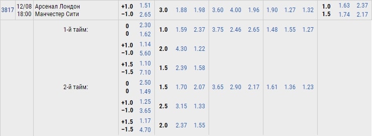 Три последних сезона чемпион не может победить в стартовом туре, это факт. В прошлом сезоне победу в Премьер-Лиге одержал «Манчестер Сити», который в первом туре встречается в гостях с «Арсеналом». Котировки букмекеров на матч: