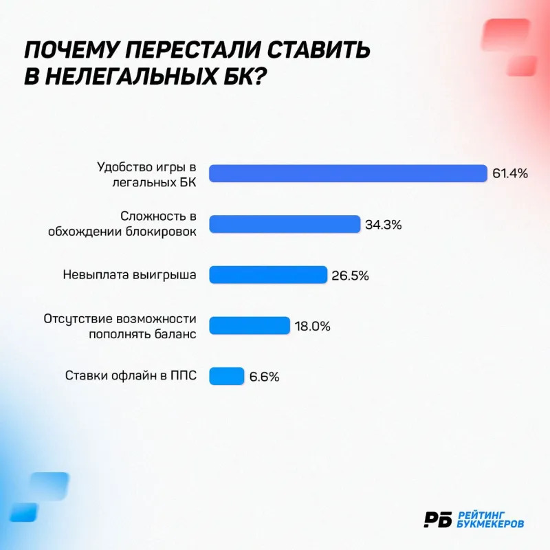 Среди игроков, которые перешли в легальные букмекерские конторы, почти все заявляют об удобстве игры, причиной ухода стали сложности с выплатами и обходом блокировок со стороны РКН.