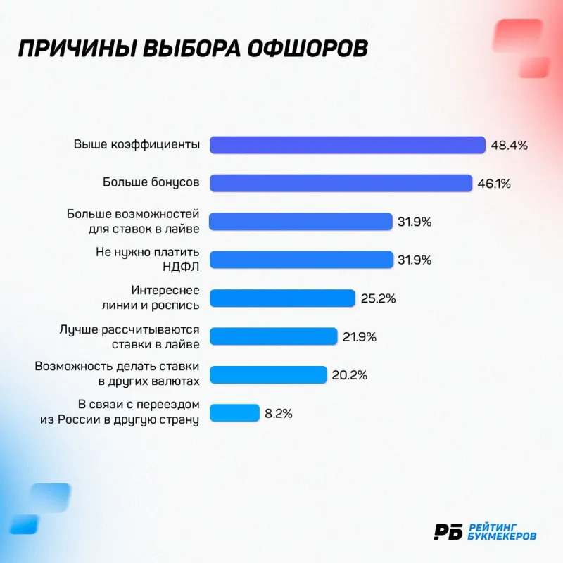 «Рейтинг Букмекеров» в своем исследовании исследование пришел к выводу, что четверть игроков в России по-прежнему делают ставки в офшорных БК.