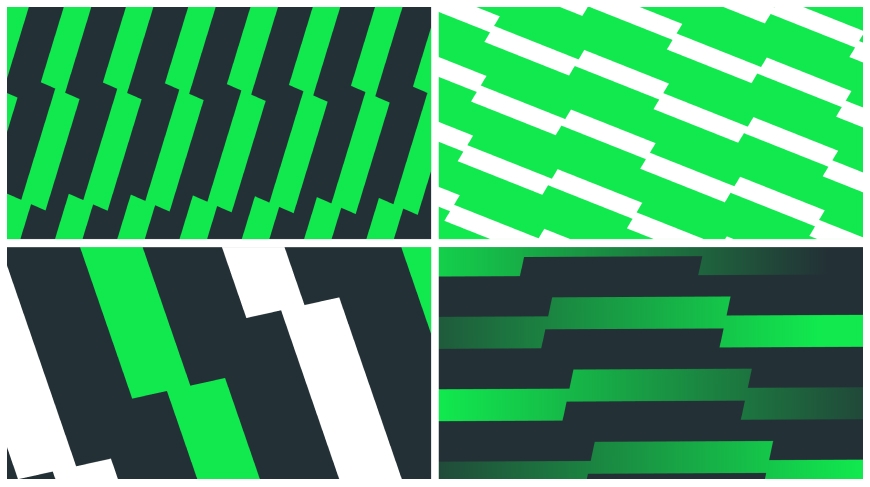 Одними из основных графических элементов айдентики Betera-Высшей лиги стали фирменные паттерны, напоминающие полосатый газон футбольного поля. Они присутствуют практически везде: в оформлении арок, тумб, бортов и других носителей. С логотипом их объединяют наклоны и технологичный глитч.