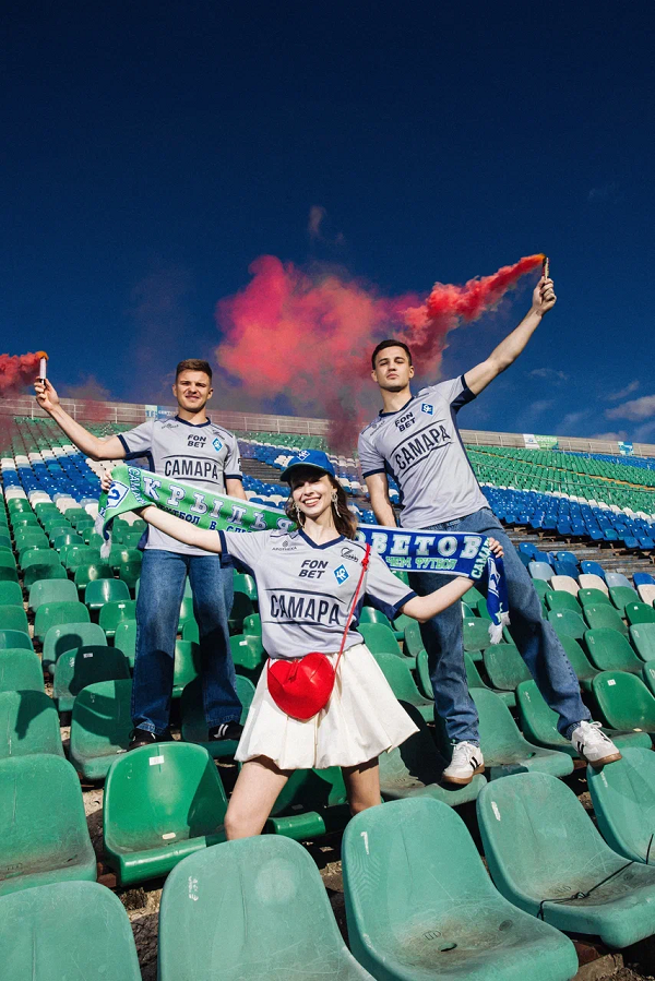 При поддержке титульного партнера Fonbet самарцы провели атмосферную фотосессию в тематике «Назад в 2004». Съемка прошла на стадионе «Металлург», где ковалась история легендарных бронзовых «Крыльев». В кадре много атрибутов того времени: граффити с Андреем Карякой и Андреем Тихоновым - лучшими игроками команды в сезоне 2004, шарф «12-й полевой игрок», ретро-бейсболка и стиль одежды главных героев фотосессии Владимира Хубулова и Максима Витюгова.