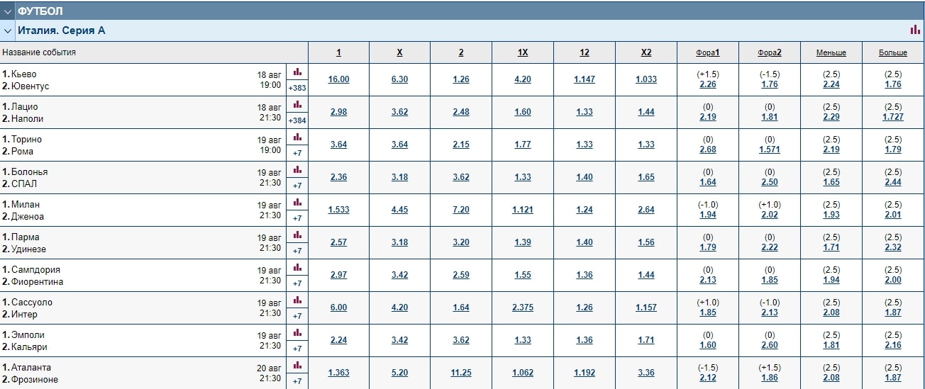 На каких ставках можно заработать в первых турах Серии А?