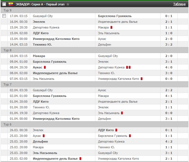 Ставить на гостей в эквадорской Серии А не очень выгодно, поэтому всегда есть смысл искать завышенные коэффициенты на матчи, где «Барселона», «Эмелек» или ЛДУ играют в гостях против аутсайдера. В таких поединках всегда есть хороший шанс забрать «лакомый» коэффициент на успех домашней команды.