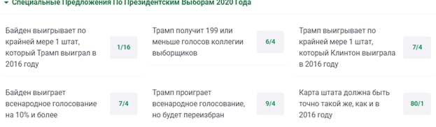 Отметим, что коэффициенты букмекеров на выборы президента США обычно очень точные с проанализированными со всех сторон исходами, неожиданности тут случаются крайне редко. Поэтому можно относительно смело ставить на фаворита, хотя выигрыш будет не очень большим из-за низких коэффициентов.