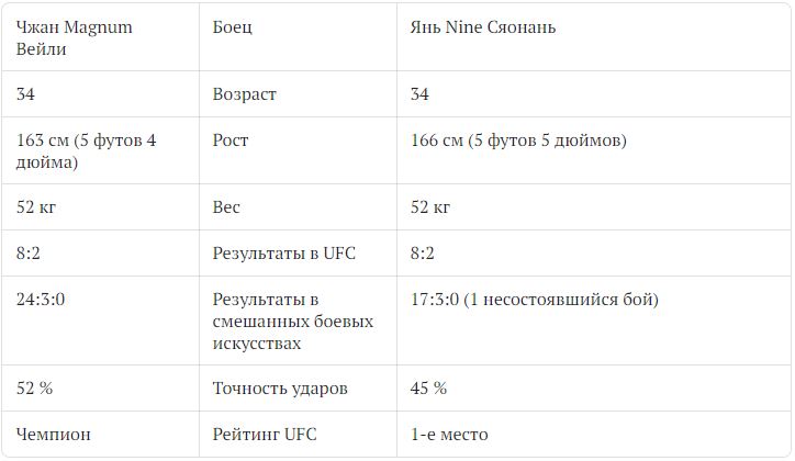 Явный фаворит этого боя Чжан Вейли зарекомендовала себя как одна из выдающихся женщин-бойцов нынешнего поколения.