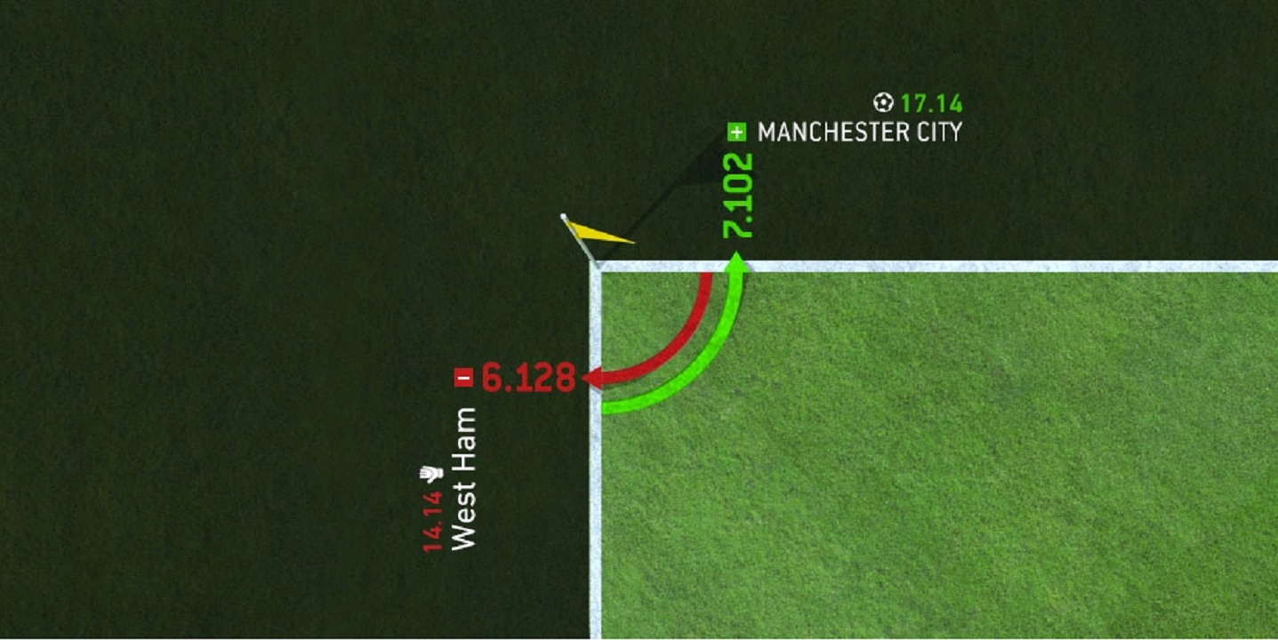Например, в АПЛ те команды, которые при своих атаках используют футбольное поле во всю ширину, часто отдают поперечные пасы и наносят большое количество завершающих ударов по воротам («Манчестер Сити», «Ливерпуль», «Тоттенхэм»), являются лидерами и в списке команд, чаще подающих угловые.
