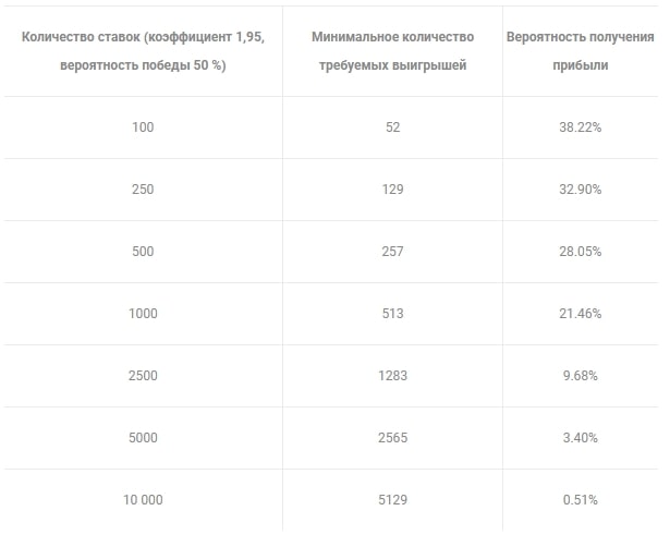 Из этого можно сделать вывод, что в долгосрочной перспективе ни о какой рентабельности не может идти и речи. Мы просто привели на первом графике начальные сто ставок, отображенных на втором, где выборка значительно шире. Однако стоит согласиться с тем, что на протяжение нескольких сотен пари рентабельность, все еще, сохранялась. Канеман и Тверски полагали, что люди часто склонны считать случайные последовательности вполне закономерными, даже когда они не могут обосновать это логически.