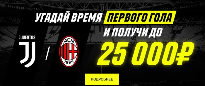 - Спрогнозировать минуту матча, на которой будет забит первый засчитанный гол в матче между командами «Ювентус» и «Милан», который будет проходить в рамках спортивного События по футболу Кубка Италии;