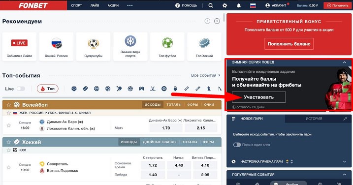 В зачет игроку идут ставки на любые виды спорта – выигрышные и проигравшие. А минимальная сумма пари в течение дня – 500 рублей. Сумма же каждого пари – 100 рублей.