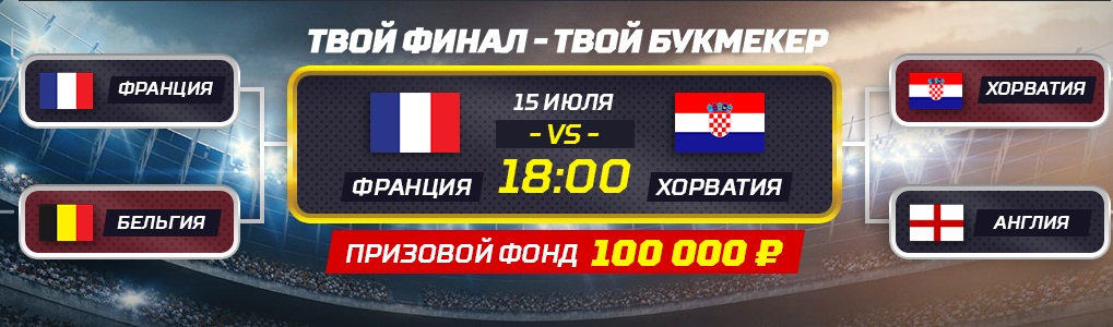 Условия просты: зарегистрируйтесь на сайте и с 12 по 15 июля делайте ставки от 300 рублей с использованием финального матча Чемпионата мира. Чем выше коэффициент, чем больше событий в билете и чем выше сумма ставки, тем больше шанс стать одним из победителей розыгрыша денежных призов!