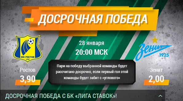 В этой связи БК Лига Ставок предлагает принять участие в акции: если первый гол выбранная команда забьёт после розыгрыша углового, пари на её победу будет рассчитано досрочно.