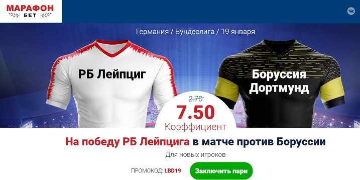 Для участия в промоакции Участник должен заключить предматчевое пари на сумму не менее 100 RUB на исход «Победа РБ Лейпциг» (квалифицирующее пари) в матче «РБ Лейпциг - Боруссия Дортмунд», и пари будет рассчитано с повышенным коэффициентом.