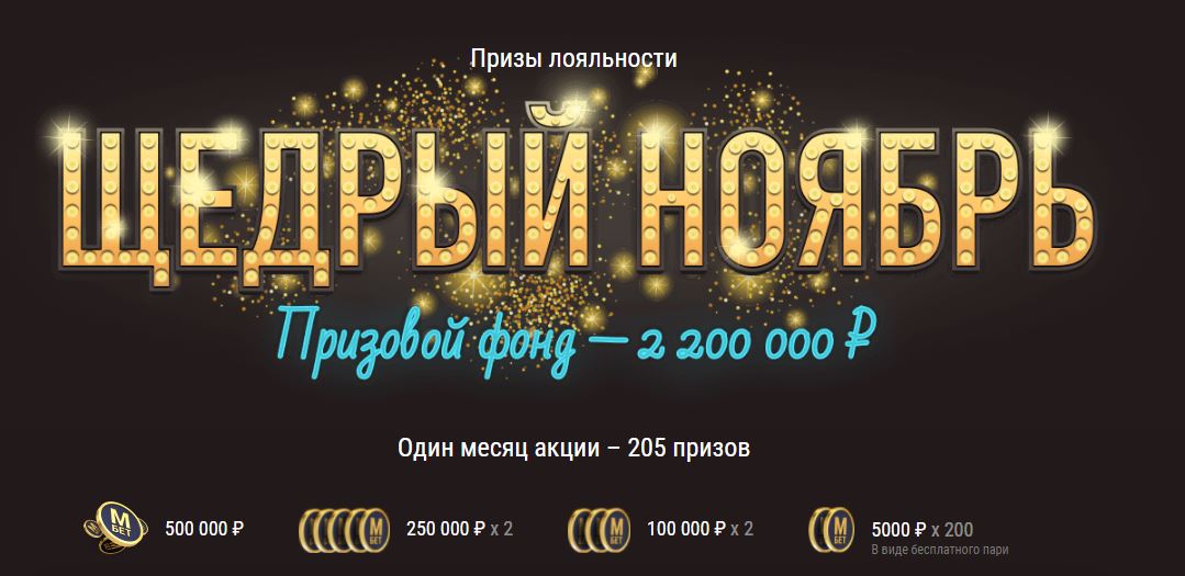 В данной акции букмекер разыгрывает денежные средства на общую сумму 1 200 000 рублей и бесплатные пари на общую сумму 1 000 000 рублей.