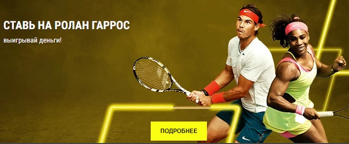Предложение действительно для всех ставок (pre-match/live; «ординар» / «экспресс»), сделанных на сайтах букмекера и в приложениях для систем iOS и Android, на любой исход событий в турнире Roland Garros.