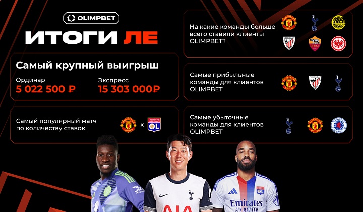 Завершились два еврокубковых турнира сезона-2024/25 — Лига Европы и Лига конференций. Букмекерская компания OLIMPBET подвела итоги соревнований, в которых определила клубы, принесшие наибольшую прибыль бетторам, отметила матчи, собравшие наибольший оборот, а также назвала самые популярные клубы, на которые игроки делали свои ставки. Ну, и конечно похвасталась самыми крупными выигрышами клиентов компании.