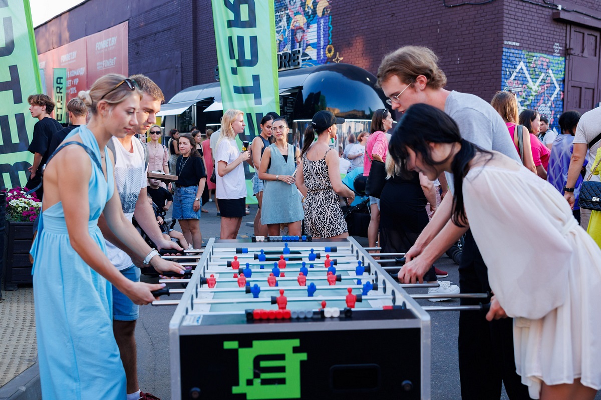 Не забыли и про футбол. На фестивале можно было сыграть в футпонг — игру, объединяющую элементы футбола и тенниса, снукболл — микс футбола и бильярда, а также испытать удачу в футбольном казино: каждый желающий мог попытаться забить гол и неожиданно выиграть приз. Счастливчики ушли с сумкой-холодильником, блендерами и стильным мерчем.
