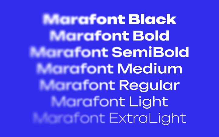 У Марафона появилась собственная гарнитура — Marafont. Это широкий жирный гротеск, разработанный специально под новый выразительный характер бренда.