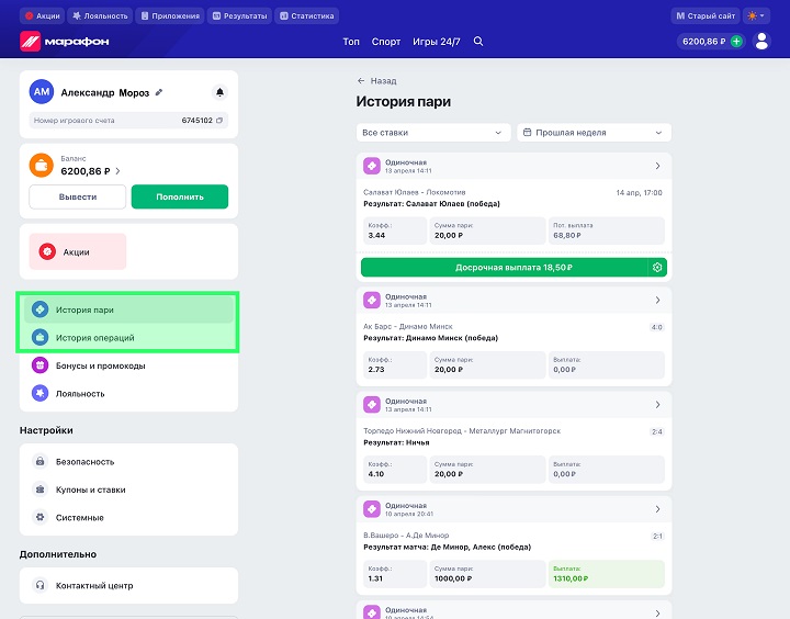 Изменения коснулись и профиля игрока. Теперь легче управлять настройками и быстрее переходить к нужным разделам: улучшена навигация в профиле. В новом разделе «История операций» можно отслеживать пополнения и выводы со счёта.