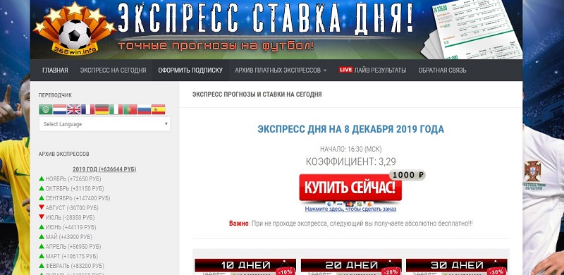 Каждый экспресс поставляется с коэффициентом выше двойки, а рассылка осуществляется на электронную почту. Оплатить услуги можно всеми популярными системами – банковские карты, электронные кошельки и т.д. На случай проигрыша или возврата, сервис обещает предоставить бесплатную замену.