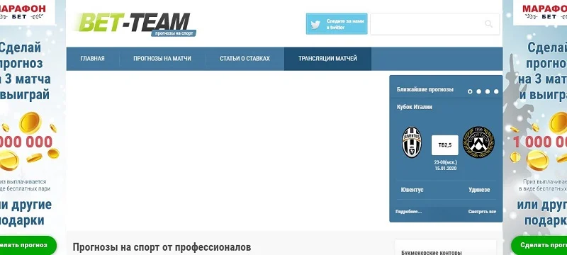 Каппер BET-TEAM предлагает только бесплатные прогнозы на футбол, чем и привлекает внимание начинающих игроков. Приятно отметить, что прогнозы не берутся с «потолка», а формируются на основе личных рассуждений аналитика и его субъективном мнении.