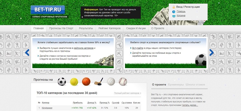 Зарегистрированные и проверенные капперы на сайте БЕТ-ТИП предлагают прогнозы на футбол, теннис, хоккей, баскетбол, волейбол и бейсбол. Месячная подписка самого успешного эксперта стоит 5000 рублей, неделя – 7000 р., дневная – 400 рублей.