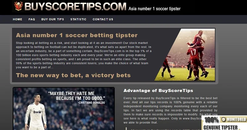Мы продолжает проверять капперские ресурсы и сейчас хотели бы остановиться на сайте BuyScoretips.com. Нам он сразу же бросился в глаза, так как посетив главную страницу, можно найти информацию о том, что есть возможность приобрести инсайды и договорные матчи.