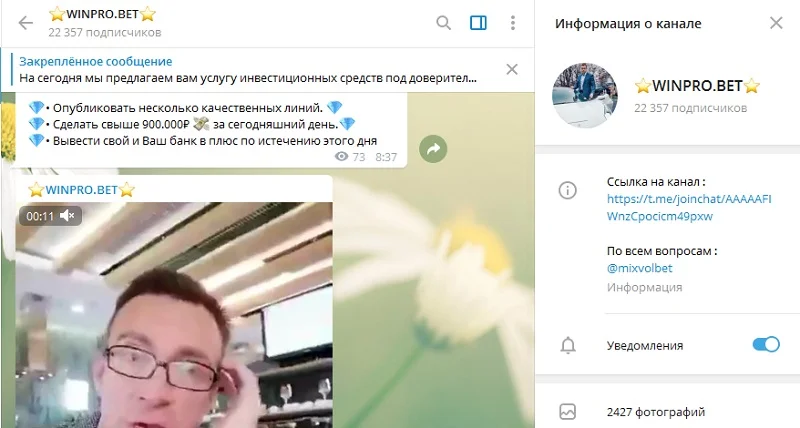 Канал WINPRO.BET – это весьма наглый мошенник, который проповедует проверенные методы для выуживания денег у доверчивых пользователей, которые гоняются за быстрыми деньгами. Связываться с его организатором Михаилом Волнаковски мы категорически не рекомендуем. Итоги сотрудничества с данным псевдо-каппером всегда будут плачевными.