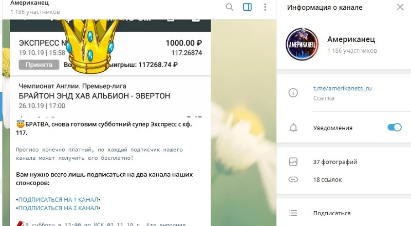 Каппер Американец не верифицирует свою статистику. В его канале она представлена в формате текстовых блоков. Их можно редактировать, когда захочется. Доверять этим данным при всем желании крайне опрометчивое решение.