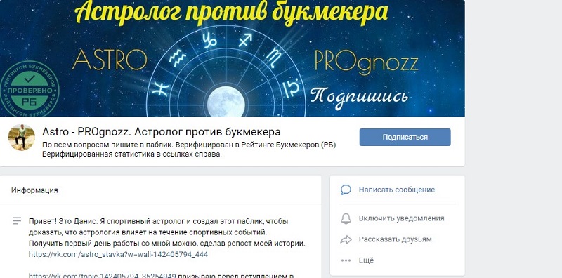 На основе гороскопа и астрологического анализа каппер предсказывает победы аутсайдеров в спортивных событиях. Купить один такой прогноз можно за 999 рублей, подписка на 10 дней – 2500, месячный пакет – 5000.