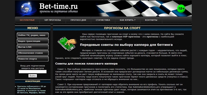 Проект BET-TIME может привлечь внимание игроков бесплатными прогнозами и доступными ценами. Сайт также предоставляет консультативные материалы, которые могут быть полезны новичкам.