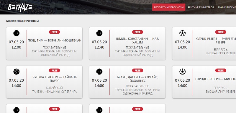 Все прогнозы от аналитиков Bethazer публикуются в открытом доступе. Аналитика транслируется в одноименном разделе на сайте и представлена в кратком виде: