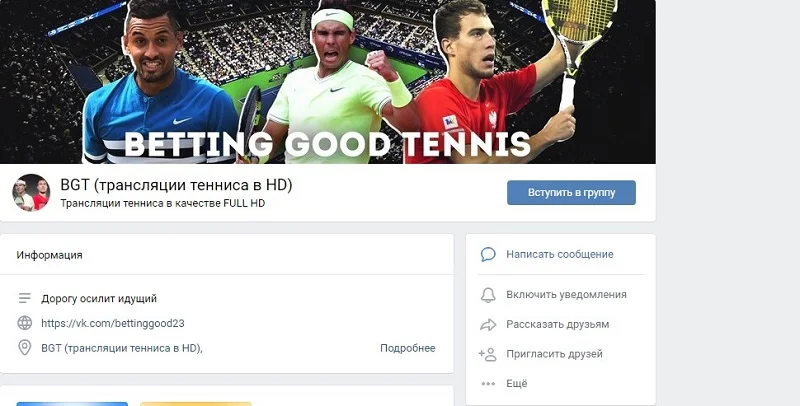 Среди контактов в паблике можно найти аккаунт некого Rafael Ronaldo. Именно ему, наверняка принадлежит группа ВК. Все комментарии в ней открыты. Стоимость одного прогноза в группе Betting Good Tennis 1,5 доллара. Что касается месячной подписки, то она возможна при личном общении с владельцем.
