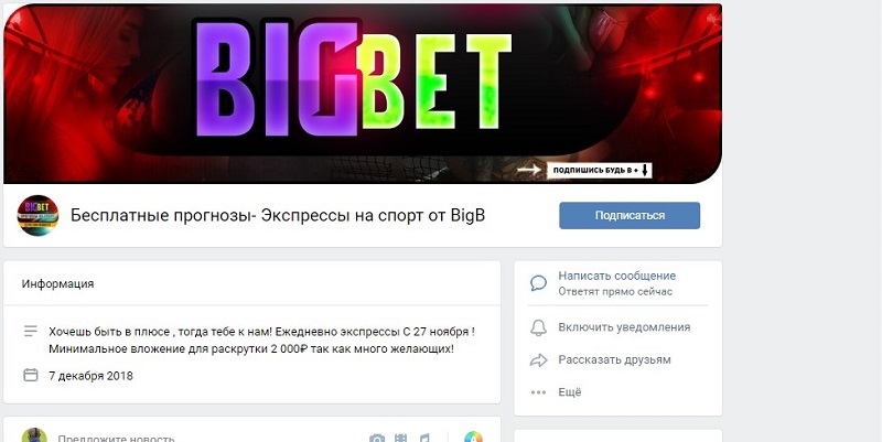 У нас нет оснований доверять группе BigB и ее руководителю Дмитрию Захарову. Он не верифицирует свои ставки и даже не ведет открытую статистику.