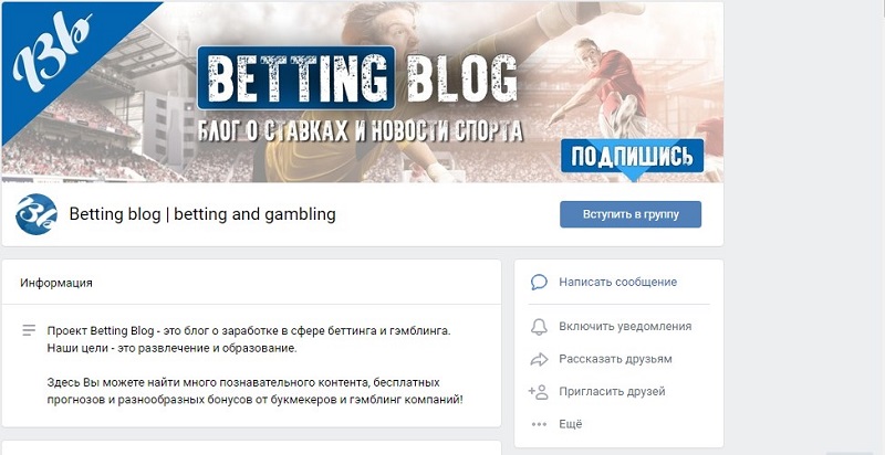 Сообщество Betting Blog в социальной сети Вконтакте не может похвастаться широкой аудиторией читателей. В момент написания обзора, на группу подписалось чуть больше полутора тысячи человек.