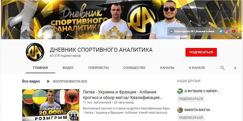 Канал Дневник спортивного аналитика был создан в 2016 году. На сегодняшний день он собрал почти 24 миллиона просмотров и 64 тысячи подписчиков.