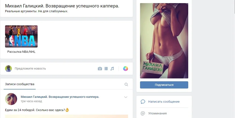 Создателем проекта является Михаил Галицкий. В самом начале 2018 года он делал перерыв в своей работе. После он вернулся в профессию и изменил название своей группы – «Михаил Галицкий. Возвращение успешного каппера». Он уже известен в мире беттинга довольно давно, поэтому мы хотим сразу же выяснить, является ли он мошенником или же нет.
