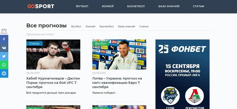 Сайт Go-sport.ru только начинает свое развитие в направлении прогнозов на спорт. Пока функционал и информационная база ресурса достаточно урезаны, а прогнозы на хоккей и баскетбол предлагаются с достаточно низкими коэффициентами и чаще всего играются в пользу фаворитов.