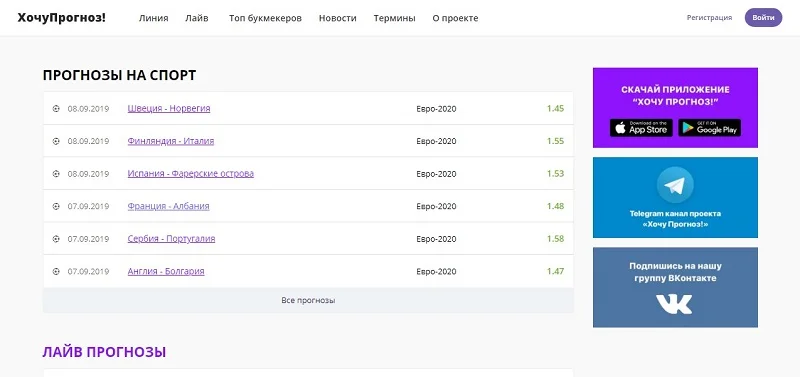 Список бесплатных прогнозов от аналитиков проекта «Хочу прогноз» доступен в меню «Линия». Как уже упоминалось выше, в большей степени рекомендации по ставкам представлены на футбольные матчи. Реже авторы выкладывают прогнозы для баскетбольных, хоккейных и теннисных матчей.