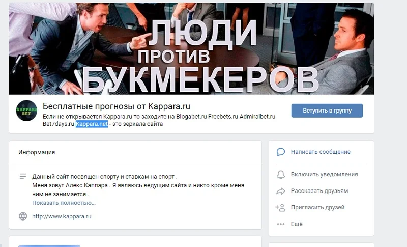 Каппер ведет работу через собственный сайт, но основной контакт с подписчиками происходит в группах социальных сетей.