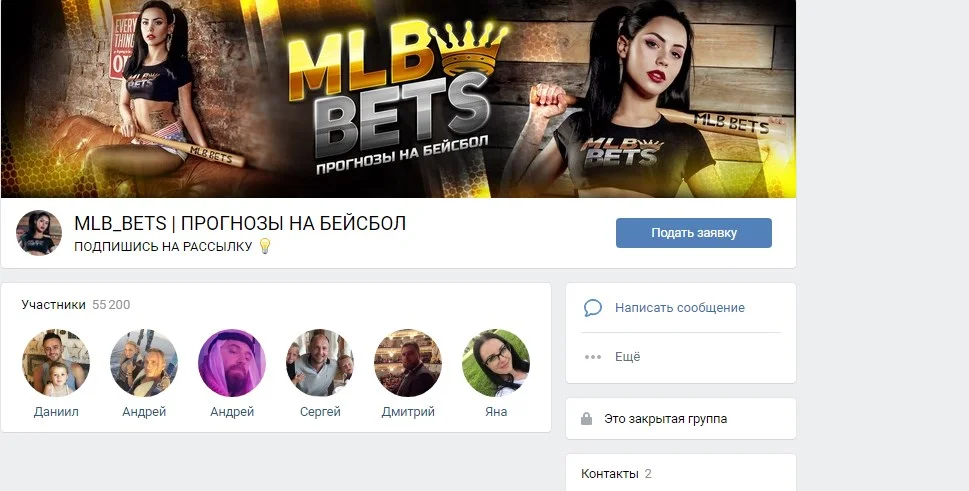 Сообщество MLB Bets в социальной сети Вконтакте собрало 52 тысячи подписчиков. Стартовый анализ группы дает основания полагать, что большая часть аудитории накручена искусственным образом.