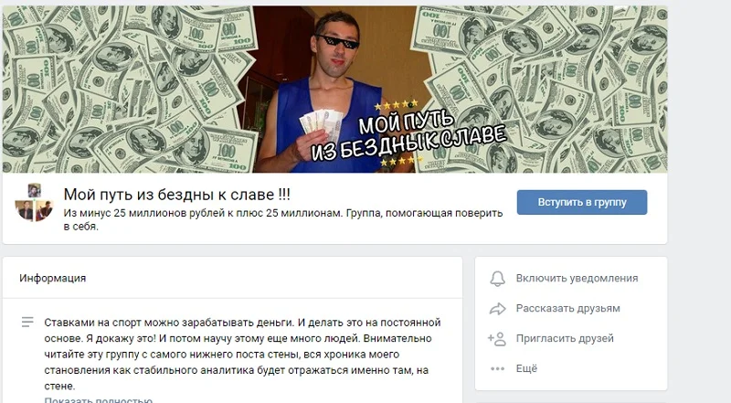 Сергей утверждает о том, что на ставках он проиграл 25 миллионов российских рублей. Он не скрывает цель – стремление отыграться. На многих форумах и тематических сайтах Бестова называют лудоманом. Приятно, что на своем канале Мой путь из бездны к славе все прогнозы абсолютно бесплатные. Есть реклама партнерских программ букмекеров, но все же это логично как-то же должен этот канал приносить прибыль. Большим плюсом для Сергея является то, что он работает по модели СРА с букмекерами, то есть он не привязан к проигрышу своих клиентов.