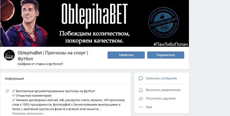 Ресурс OblepihaBet представлен в телеграме, группе Вконтакте и на Youtube-канале. В ВК паблик насчитывает 18 000 подписчиков. Комментарии открыты и в большинстве своем они носят положительный характер.