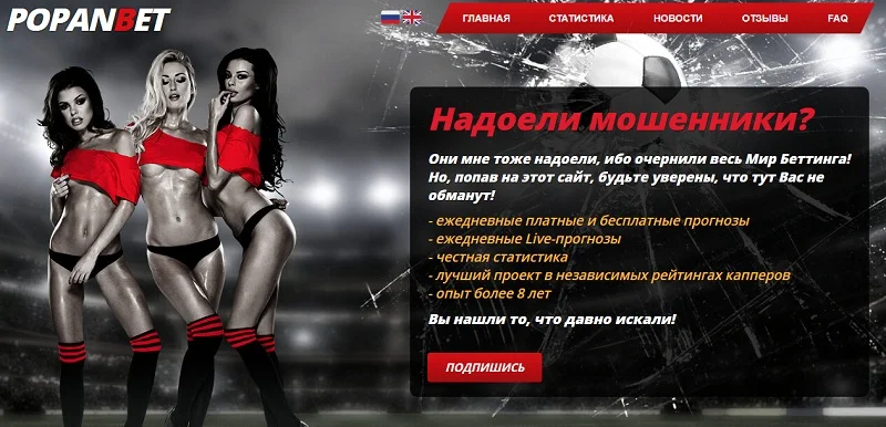 Единственный недостаток Popanbet – отсутствие верификации прогнозов на специальных сайтах. По всем другим параметрам каппер проходит проверку, предлагая бесплатные прогнозы, контактируя с клиентами и выставляя демократичные цены на платную подписку.