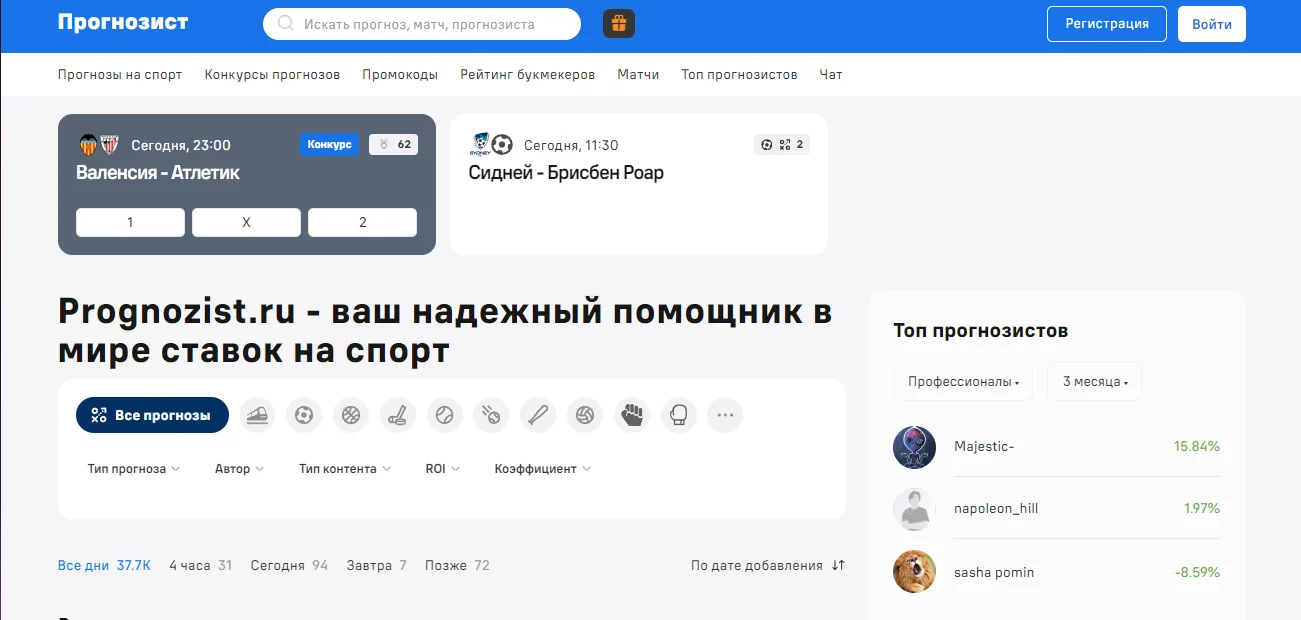 Важный момент: на сайте много пользовательского контента. Это плюс, потому что есть выбор и конкуренция, но и особенность, потому что качество прогнозов у разных авторов будет отличаться. Поэтому ключ к "доверию" здесь не слепая вера в громкое имя, а грамотное использование статистики.