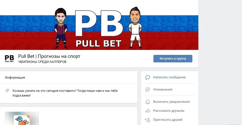 Предметом сегодняшнего обзора станет паблик Pull Bet, который работает посредством социальной сети Вконтакте.