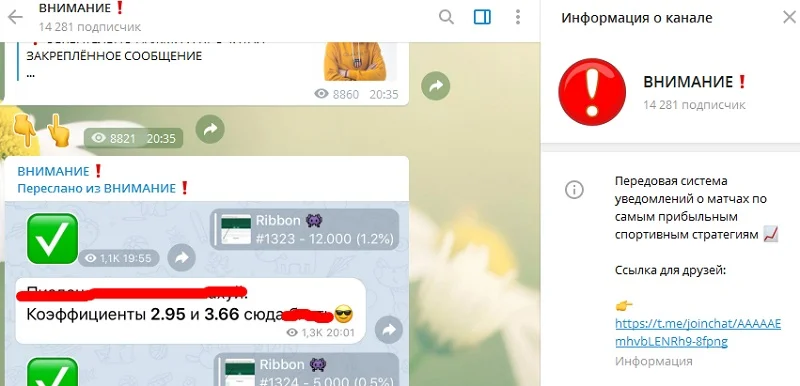 В среднем публикуемые сообщения в чате собирают не больше пяти тысяч подписчиков. Это значит, что больше 70% пользователей ресурса это ненастоящие пользователи. Каждый день в ленте канала публикуется реклама платных услуг каппера и очень громкие заявление – «Обанкротим букмекеров», «Сегодня будем унижать контору» и другие недалекие фразы, которые, по мнению админа, должны привлечь внимание новых клиентов.