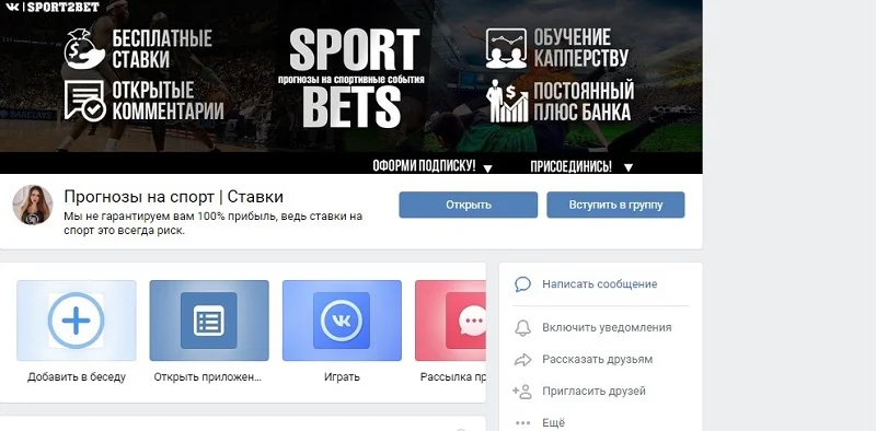 Сегодня предметом нашего обзора стал проект SportBets, который оперирует через группу в социальной сети Вконтакте и Телеграмм-чат.